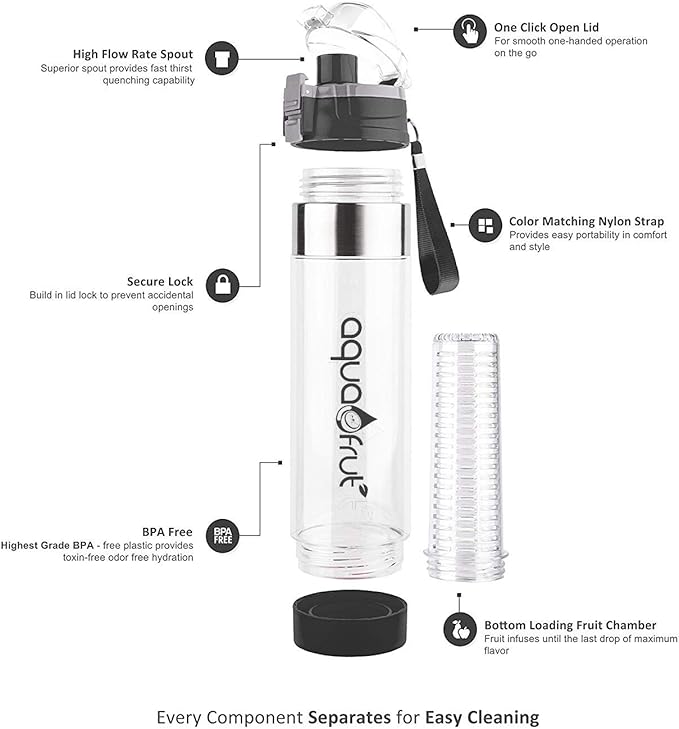 - LIFETIME WARRANTY - We’re so confident in the build and craftsmanship of our bottle, each one comes with a LIFETIME warranty! If you’re not absolutely satisfied with our bottle for any reason, let us know and we’ll refund or replace it right away. Get your AquaFrut Infuser bottle NOW!