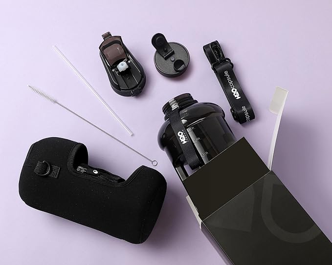 - HALF GALLON HYDRATION WITH COVERED STRAW LID: The extra large 2.2L / 74 oz plastic jug holds all the water you need to stay hydrated while you exercise. The reusable half gallon comes with a leak-proof & dust-proof covered straw lid, which helps protect the mouthpiece and flips open with a click of a button. The straw-lid is air-sealed: Run straw brush through mouth piece before initial use. The H2O Capsule bottle with storage sleeve comes with a bonus straw cleaning brush.
