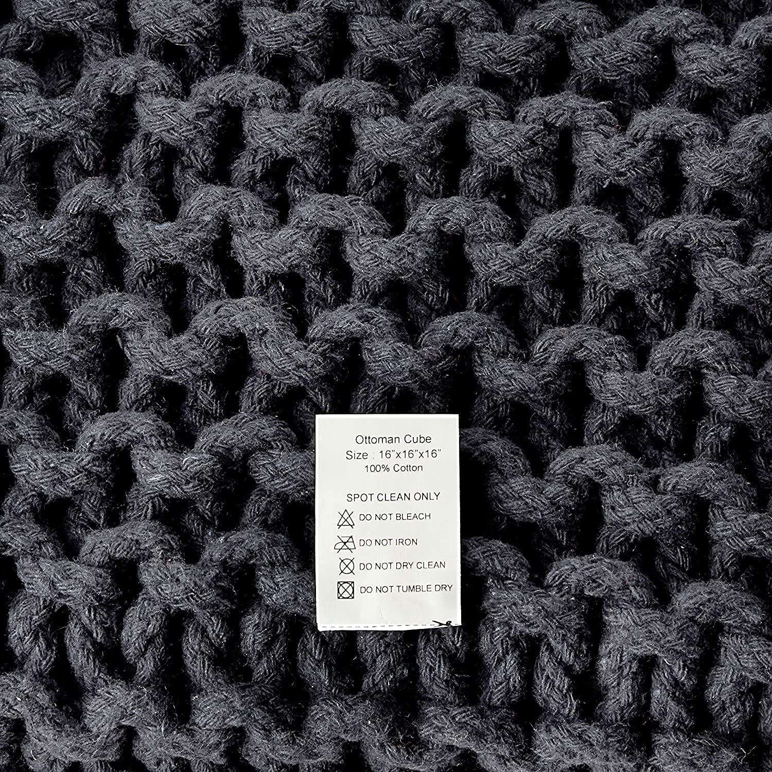 - WHERE STYLE EFFORTLESSLY BLENDS WITH FUNCTION: Our handcrafted cube knitted pouf/ottoman foot rest is a beautiful accent piece for your home or business. It complements any kind of interior décor and is perfect for creating extra seating or for using as a footrest . Put one on display in the living room, bedroom, playroom, kid’s room, nursery, or any other room in and around your home. Give a Comfortable feeling to hardwood floors with our Hand Knitted Cotton Pouffe Ottoman.