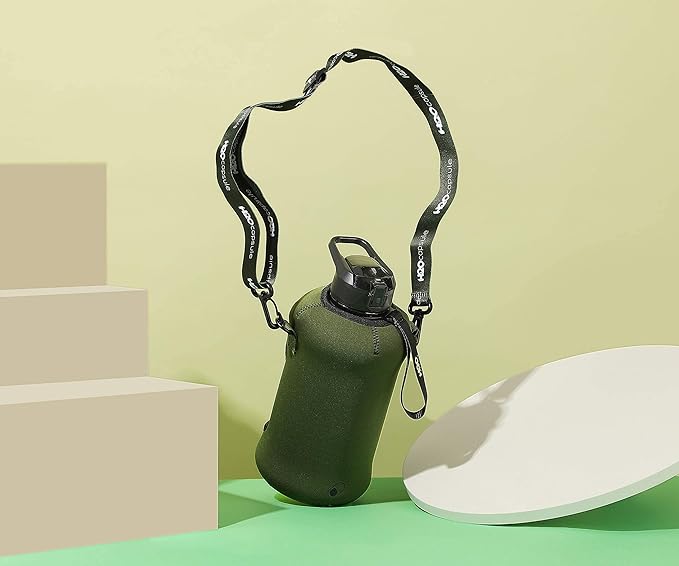 - HALF GALLON HYDRATION WITH COVERED STRAW LID: The extra large 2.2L / 74 oz plastic jug holds all the water you need to stay hydrated while you exercise. The reusable half gallon comes with a leak-proof & dust-proof covered straw lid, which helps protect the mouthpiece and flips open with a click of a button. The straw-lid is air-sealed: Run straw brush through mouth piece before initial use. The H2O Capsule bottle with storage sleeve comes with a bonus straw cleaning brush.