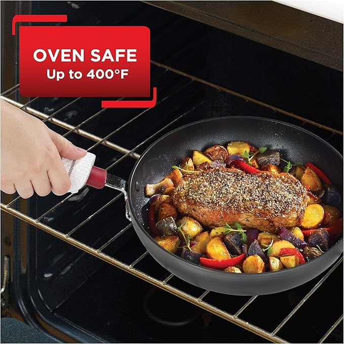 T-fal Ultimate Hard Anodized Nonstick Cookware Set 12 Piece, Oven Broiler Safe 600F, Kitchen Cooking Set w/ Fry Pans, Saucepans, Dutch Oven, Kitchen Utensils, Pots and Pans, Dishwasher Safe, Black