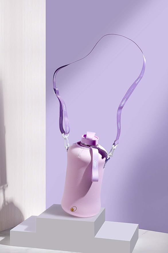 - UNIQUE STORAGE SLEEVE: Using the space under the large jug handle to store your stuff, the patent-pending removable thermal sleeve has a unique design that holds your cards and cell phone, and is finished with an in-built key chain and removable shoulder strap for convenient hands free carrying! It’s the only encased water jug that holds your things while you exercise.