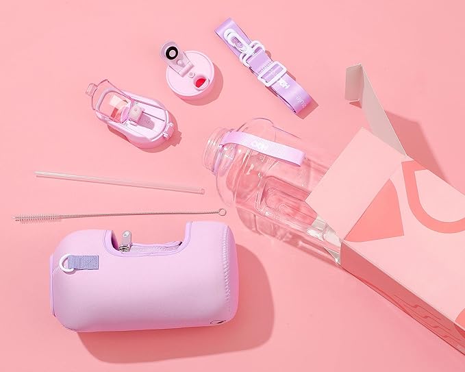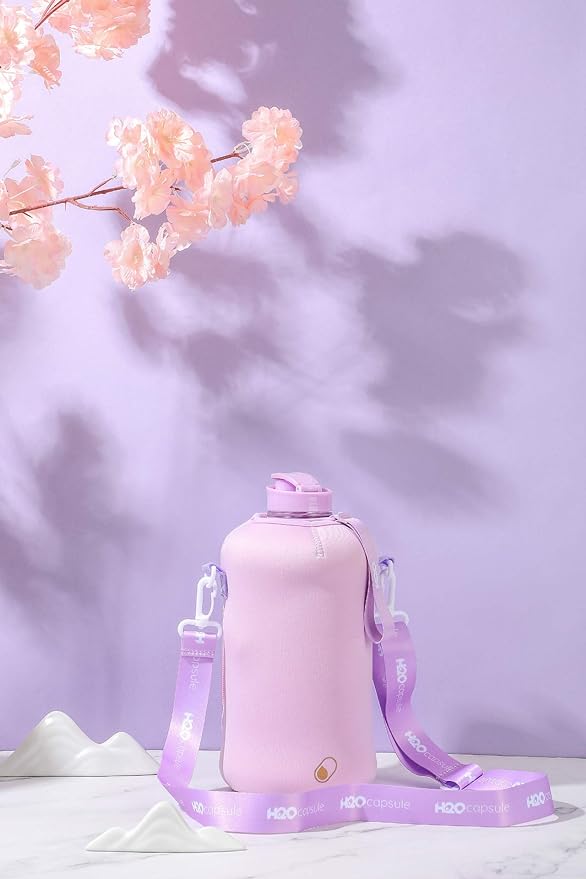 - HALF GALLON HYDRATION WITH COVERED STRAW LID: The extra large 2.2L / 74 oz plastic jug holds all the water you need to stay hydrated while you exercise. The reusable half gallon comes with a leak-proof & dust-proof covered straw lid, which helps protect the mouthpiece and flips open with a click of a button. The straw-lid is air-sealed: Run straw brush through mouth piece before initial use. The H2O Capsule bottle with storage sleeve comes with a bonus straw cleaning brush.