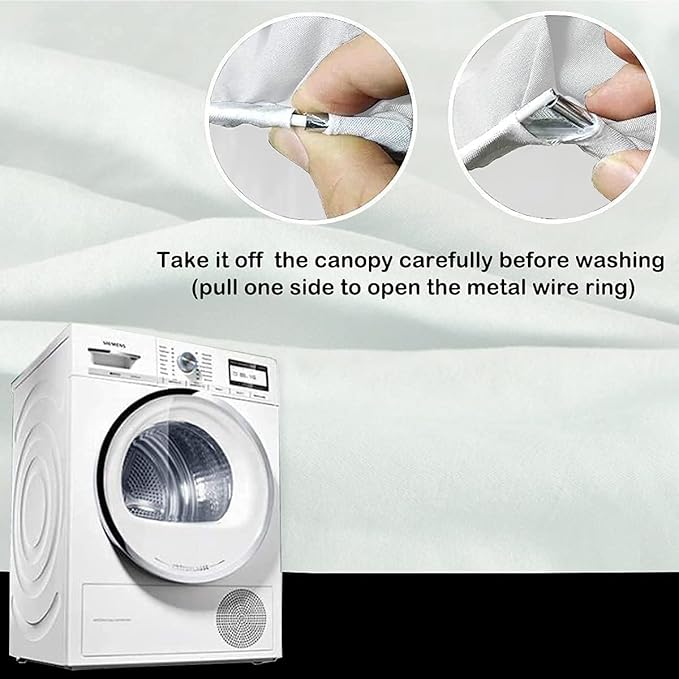 - Easy to install and storage. The included steel rims, hooks and screws can be easily installed .Please use screws to fix crib canopy on the ceiling, It will be more durable and secure.