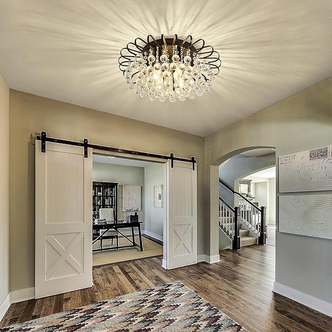 CVKASH Crystal Floral Chandelier 4-Light Antique Modern Black Flush Mount Raindrop Crystal Ceiling Lighting Fixture Chandelier for Living Room Bedroom Dining Room Entryway D17.71 H8.26
