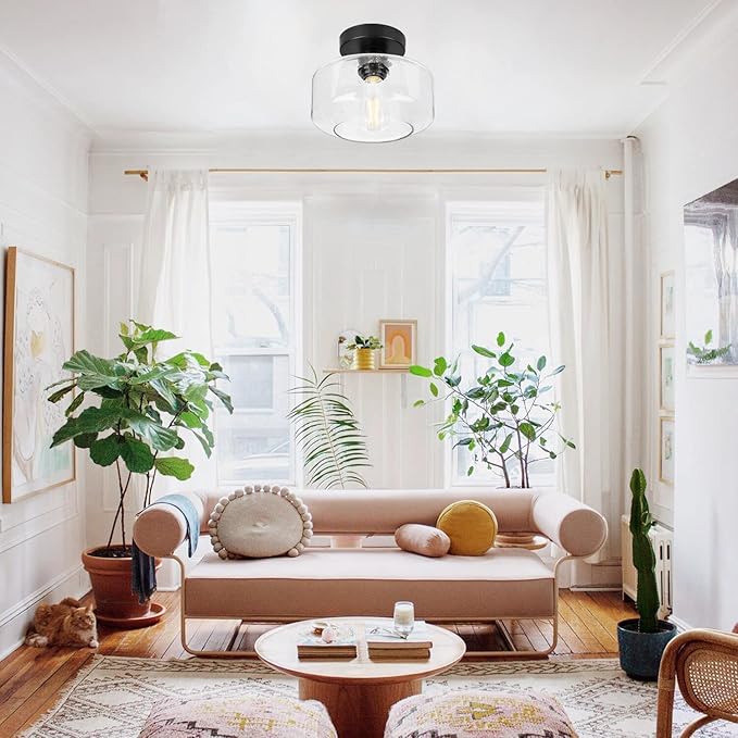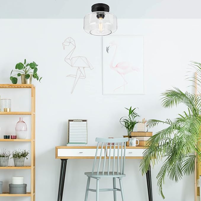 - Semi Flush mount Design& Vintage Style--- This ceiling light is perfect for vintage farmhouse and industrial decors. A Matte Black Base complements the seeded glass and heightens the classic industrial look of this ceiling light, the bubble glass casts a nice shadow on the ceiling, creates a romantic atmosphere to your home.