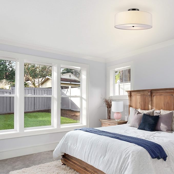 - WHITE LINEN SHADE: offering a bright but diffused light, a white linen shade brings a classic element to any space while allowing you to give your ceiling light and room a warmer or colder look depending on the bulb color temperature you choose