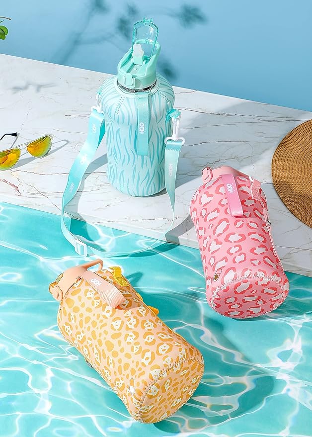 - UNIQUE STORAGE SLEEVE: Using the space under the large jug handle to store your stuff, the patent-pending removable thermal sleeve has a unique design that holds your cards and cell phone, and is finished with an in-built key chain and removable shoulder strap for convenient hands free carrying! It’s the only encased water jug that holds your things while you exercise.