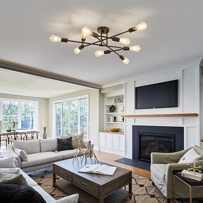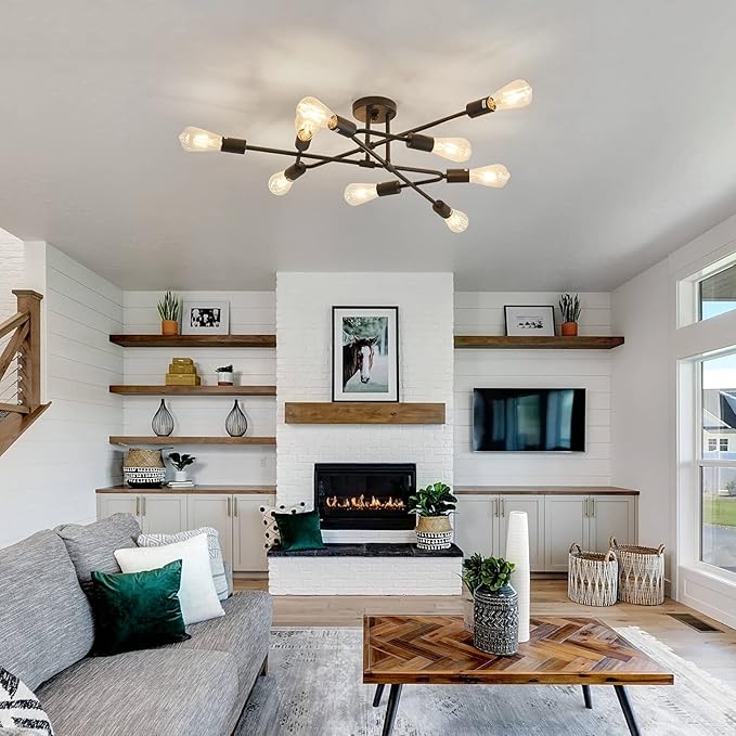 - CLOSE TO CEILING LIGHT DESIGN --Semi flush mount chandelier light with elegant and rustic look, not only a farmhouse lighting, but also a modern beautiful decoration. Indoor ceiling fixtures flush mount design creates a comfortable and modern ambiance to your house.