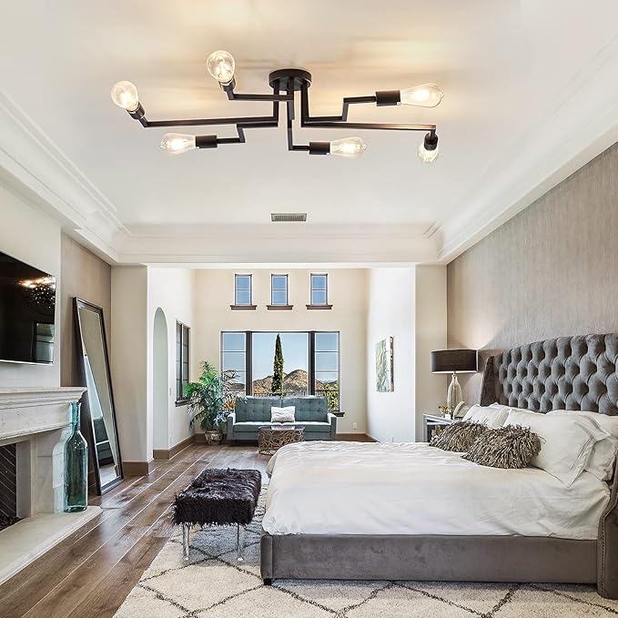ZGLAOJT 6- Lights Ceiling Light Fixture,Vintage Semi Flush Mount Ceiling Light,Black Chandelier for Dining Room Living Room Kitchen Farmhouse.