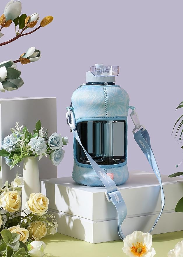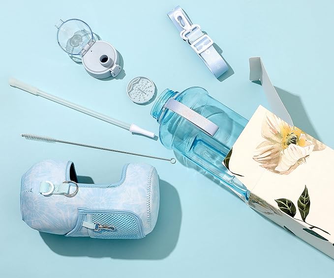 H2O Capsule 2.2L Half Gallon Water Bottle with Storage Sleeve and Removable Straw – BPA Free Large Reusable Drink Container with Handle - Big Sports Jug, 2.2 Liter (74 Ounce), Chill TieDye