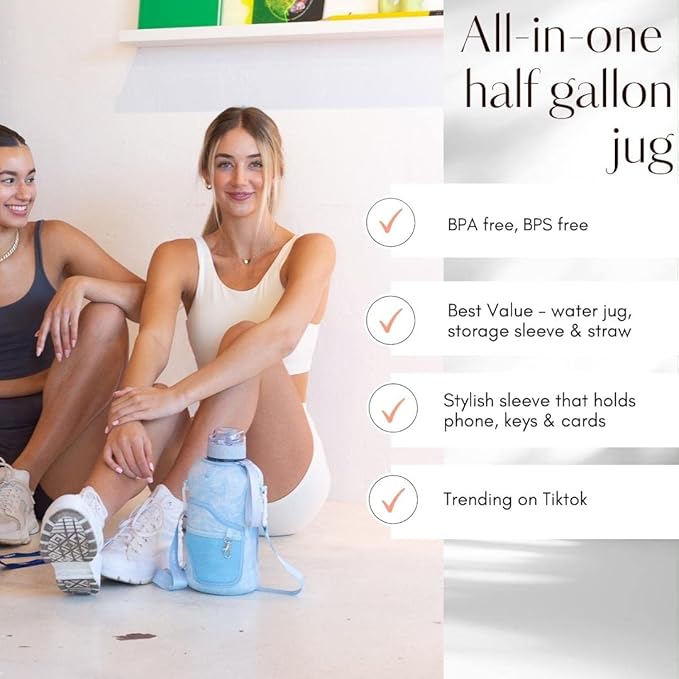 - HALF GALLON HYDRATION WITH REMOVABLE STRAW: The extra large 2.2L / 74 oz hydro jug holds all the water you need to stay hydrated while exercising. The reusable jug has a 2.25” wide mouth perfect for ice cubes, and removable straw for easy drinking.