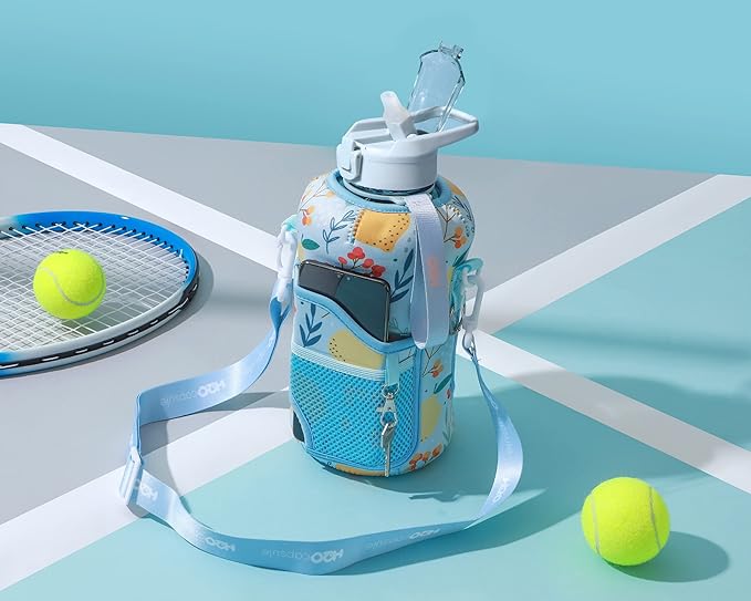 - HALF GALLON HYDRATION WITH REMOVABLE STRAW: The extra large 2.2L / 74 oz hydro jug holds all the water you need to stay hydrated while exercising. The reusable jug has a 2.25” wide mouth perfect for ice cubes, and removable straw for easy drinking.