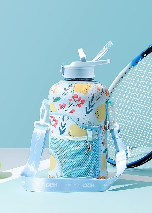 H2O Capsule 2.2L Half Gallon Water Bottle with Storage Sleeve and Removable Straw – BPA Free Large Reusable Drink Container with Handle - Big Sports Jug, 2.2 Liter (74 Ounce), Lemon Drop