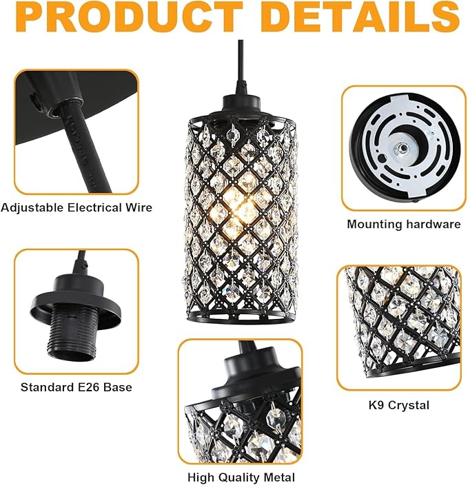 - 💡【Stylish Minimalist Kitchen Lights】The perfect combination of black pendant lights kitchen island with metal and crystals brings charming modern farmhouse style. Combined together to create the wonderful atmosphere you want, the pendant lighting adds beautiful decoration to your home.