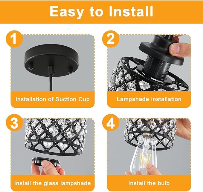 - 💡【Bulb Requirements】This crystal pendant light requires 1 x E26 base bulb,and the maximum wattage per bulb is 60W (Not including bulbs,Buy separately! )You can match light bulbs of different colors according to different areas.