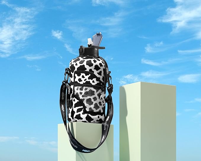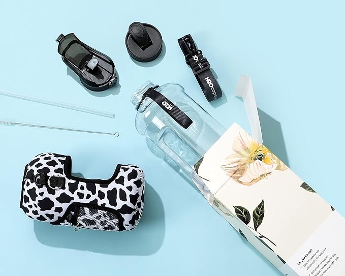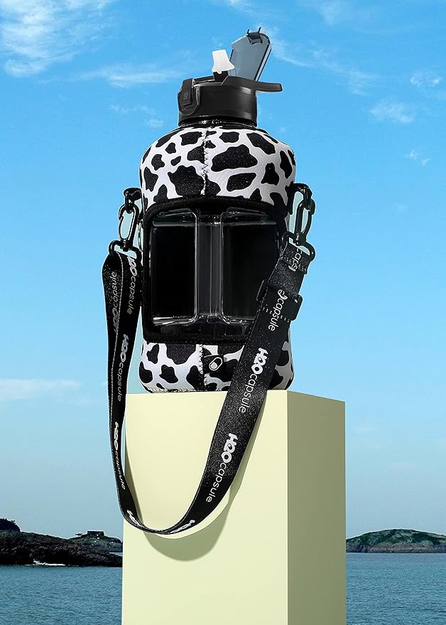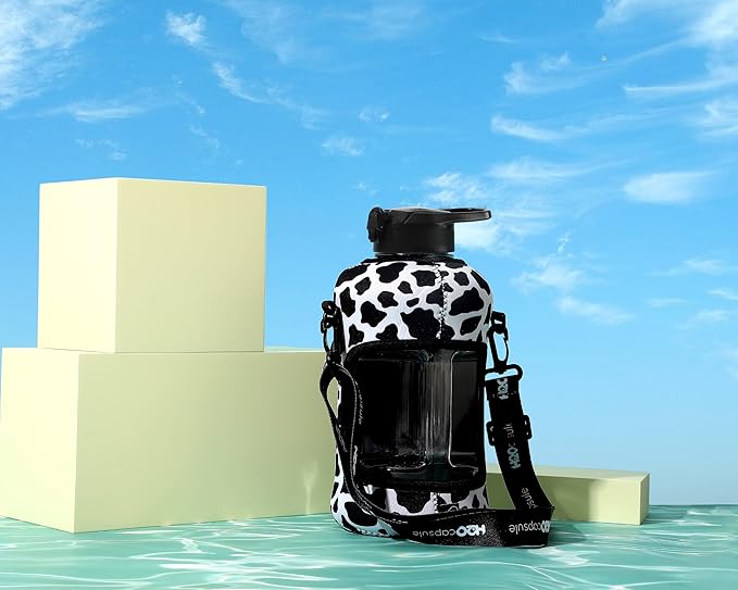 H2O Capsule 2.2L Half Gallon Water Bottle with Storage Sleeve and Removable Straw – BPA Free Large Reusable Drink Container with Handle - Big Sports Jug, 2.2 Liter (74 Ounce), Cowbell