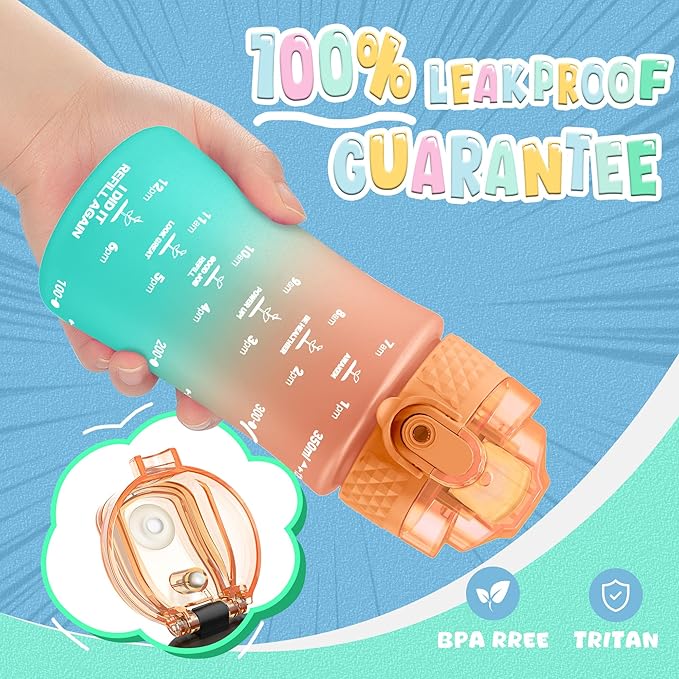 - 【DURABLE & BPA FREE】: Constructed from highly durable, BPA-free, and non-toxic plastic, this water bottle is resistant to drops and avoids easy damage.