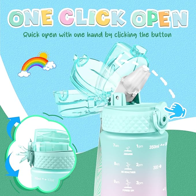 - 【BEST FOR KIDS】: Specifically designed for young children to promote hydration throughout the day. The flip-top lid incorporates a safety lock to prevent dust and leaks and can be effortlessly