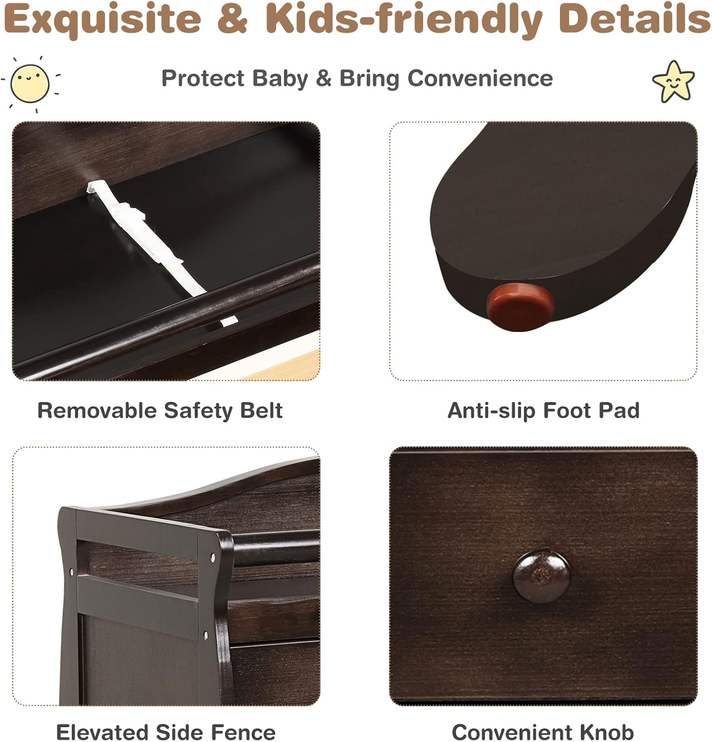 - Convenient Changing Area: Since the dresser chest is designed with changing topper, babies will have a safe and wide space to have their clothes or diapers changed. Meanwhile, its customized height will free parents from frequent bending over and help relieve fatigue of back and waist.