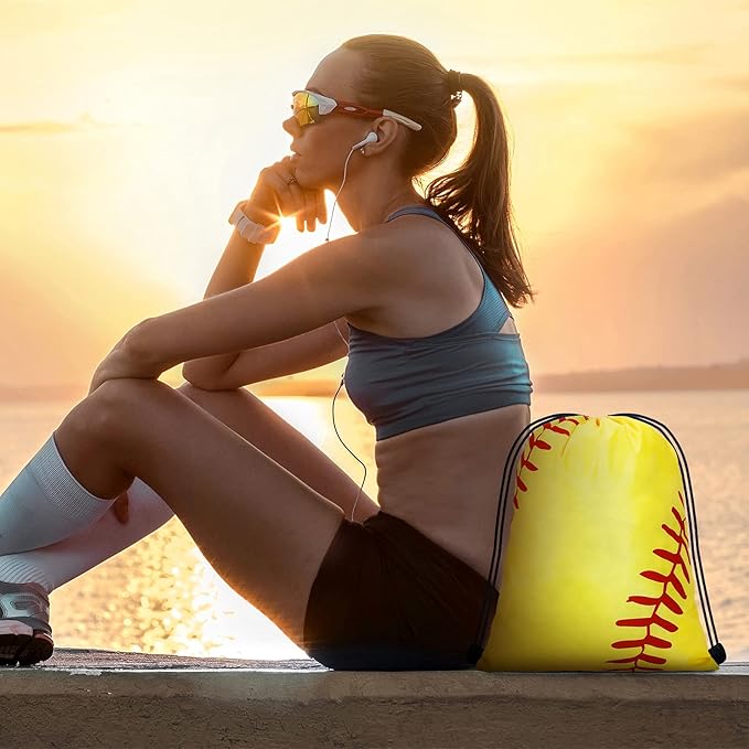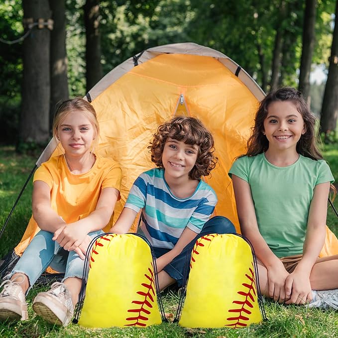12 Pcs 17 Inch Ball Drawstring Bag Gift Bags Party Favors Cinch Bags Drawstring Backpack Sack Bag (Softball Style)