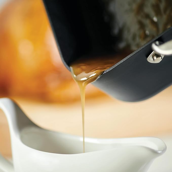 - BUILT-IN POUR SPOUT: Nonstick pan features a built-in corner spout to easily pour juices and homemade gravies