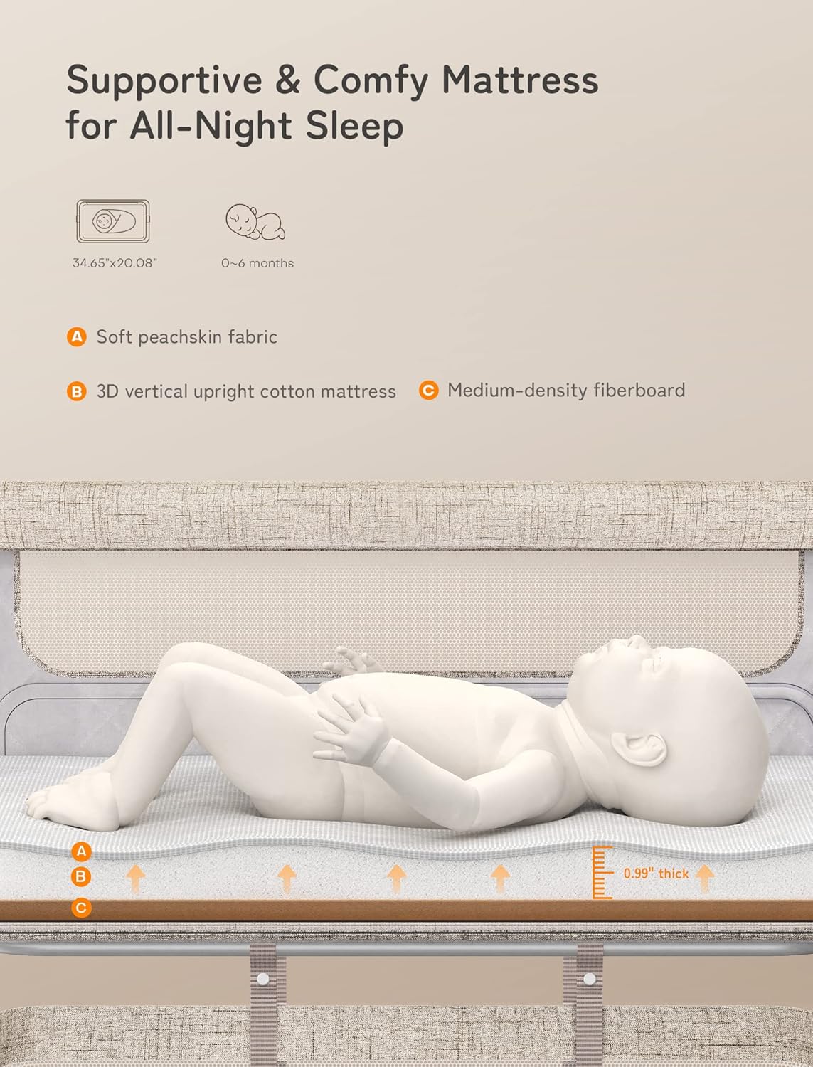 - Keep Your Baby Safe and Close: The besrey bassinets bedside sleeper — constructed of aviation-grade aluminum and steel-alloy for durability — is fully compliant with ASTM, CPSIA, and CCPSA standards, keeping your baby safe and promoting bedside parent-infant bonding with your little one