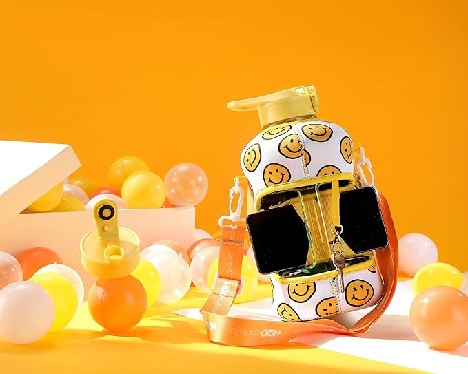 - UNIQUE STORAGE SLEEVE: Using the space under the large jug handle to store your stuff, the patent-pending removable thermal sleeve has a unique design that holds your cards and cell phone, and is finished with an in-built key chain and removable shoulder strap for convenient hands free carrying! It’s the only encased water jug that holds your things while you exercise.