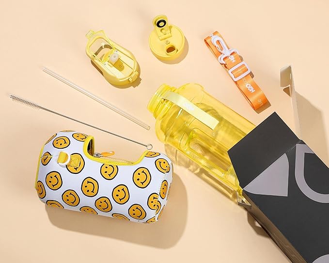 - HALF GALLON HYDRATION WITH COVERED STRAW LID: The extra large 2.2L / 74 oz plastic jug holds all the water you need to stay hydrated while you exercise. The reusable half gallon comes with a leak-proof & dust-proof covered straw lid, which helps protect the mouthpiece and flips open with a click of a button. The straw-lid is air-sealed: Run straw brush through mouth piece before initial use. The H2O Capsule bottle with storage sleeve comes with a bonus straw cleaning brush.