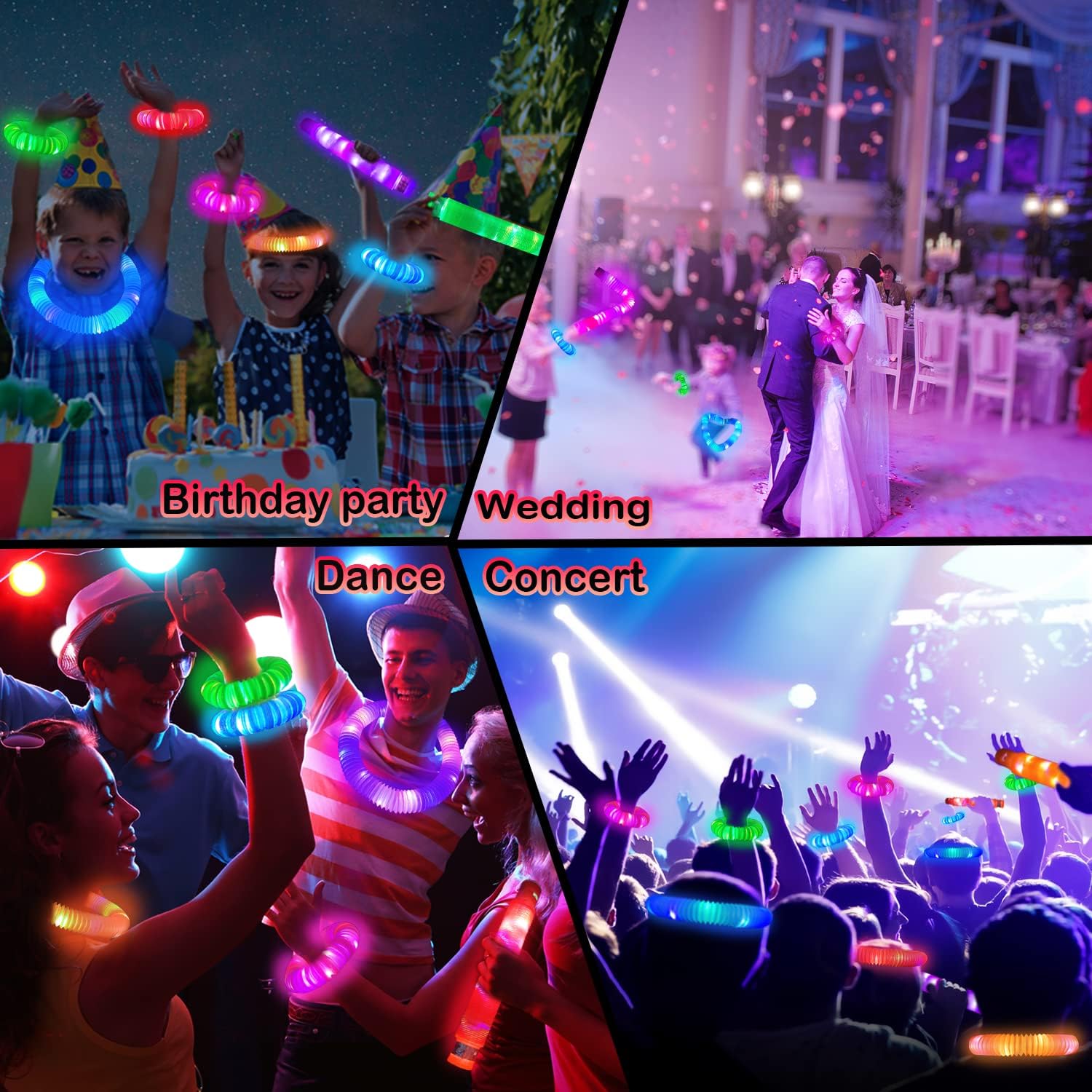 - Light-Up Accessories & Decorations - Easily connect the top with end, make a glowing bracelet, necklace or crown, Perfect for wearing at Halloween glow parties or using as fun decorations for trunk or treat car setups. A cool and eye-catching item to any celebration!