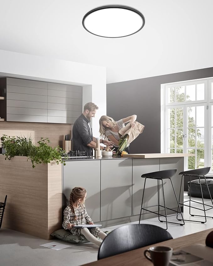 2PACK Flush Mount LED Ceiling Light Fixture Black, 15.8Inch 36Watt, Dimmable & 3000K-4500K-6000K 3 Color Selectable Ceiling Lamp 4000LM Low Profile Ceiling Light for Kitchen Bedroom Hallway Porch