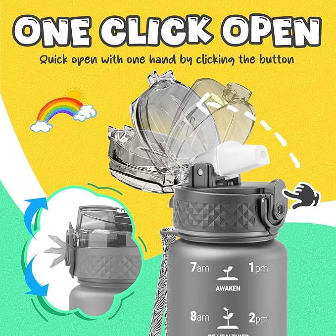 - 【Best for Kids】: Specifically designed for young children to promote hydration throughout the day. The flip-top lid incorporates a safety lock to prevent dust and leaks and can be effortlessly
