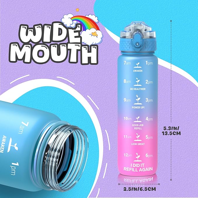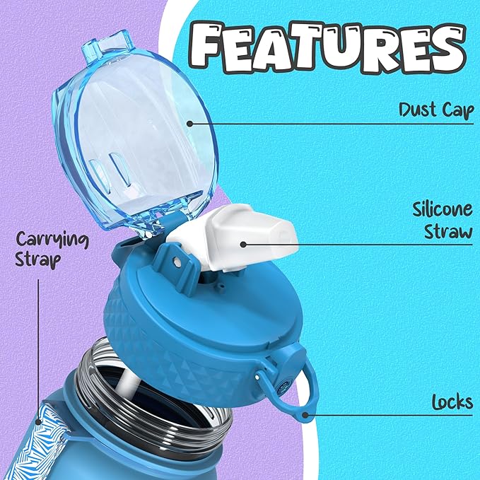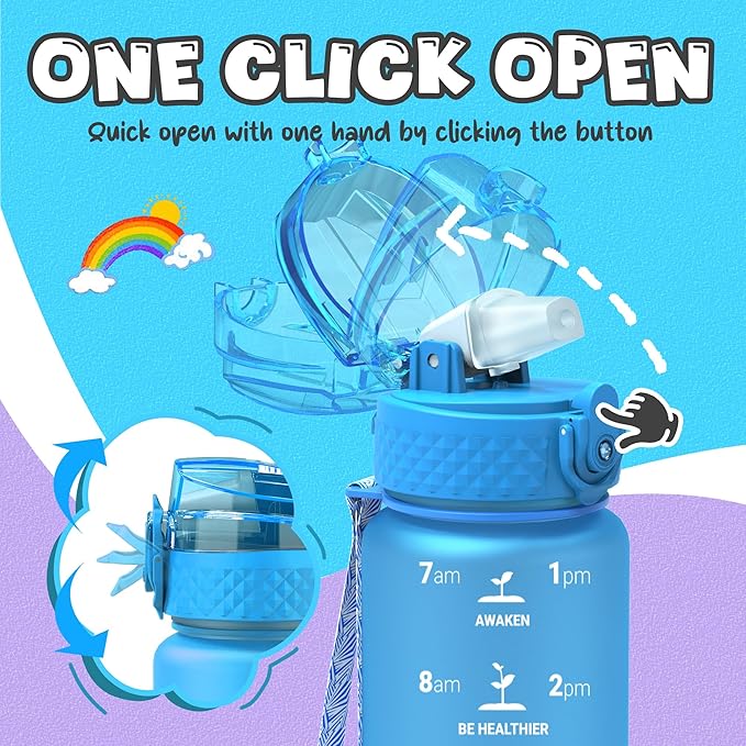 - 【Best for Kids】: Specifically designed for young children to promote hydration throughout the day. The flip-top lid incorporates a safety lock to prevent dust and leaks and can be effortlessly