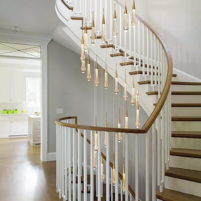 - 【Height Adjustable】 Overall light height: 155 (about 393cm); Wire adjustable length: 143 inches (about 363cm). Pre-wired and pre-determined anti-fall device, easy to install, can be installed in any space according to your needs, and comes with a staircase chandelier installation guide. The unique LED chandelier saves you a lot of time in changing bulbs.