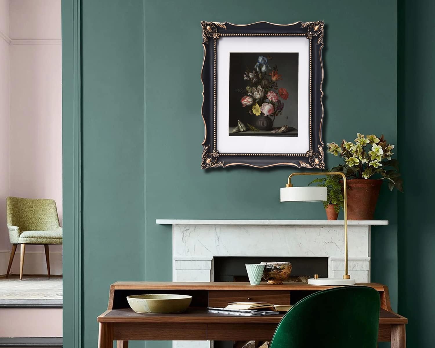 - Easy to Display: This 11x14 black ornate frame comes with a removable white mat and a decor picture. The white mat can be entirely removed for 11x14 paintings or keep it for 8x10 paintings, perfect to display any photos or paintings. The back of frame is a soft velvet back plate equipped with two-way serrated hook, which can be hang on the wall in vertically or horizontally.