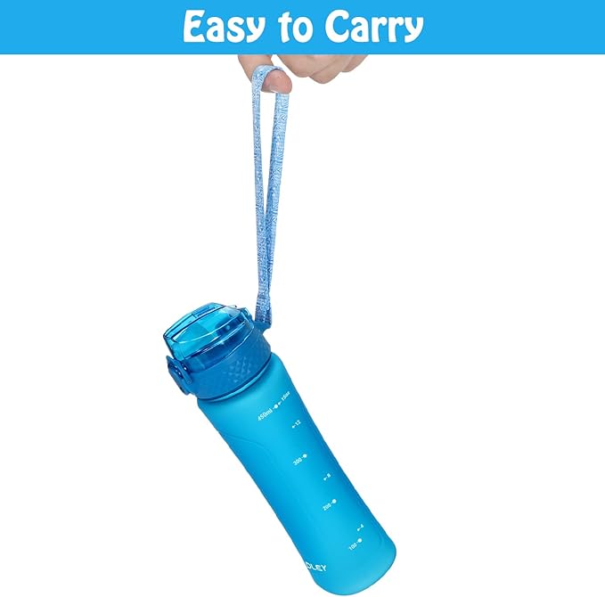 OLDLEY Replacement Straw Lid for 15 oz Water Bottle, Leakproof Spillproof Dustproof One-Click Open Cap with Carry Strap
