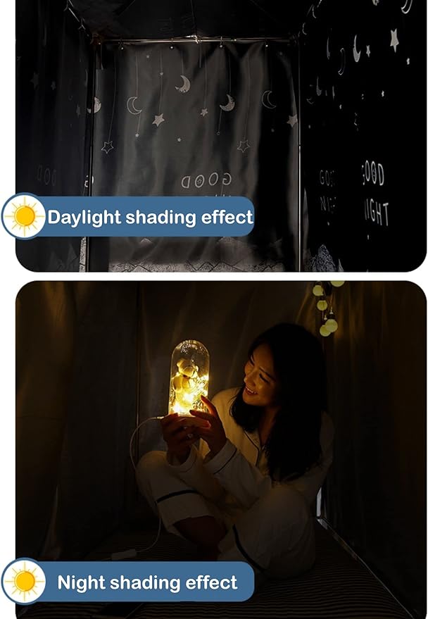- STRONG SHADING BED CURTAINS: Thick material, good shading effect, perfectly blocks 50% of the light, and the black style can even block 90% of the light. It's an excellent black out curtain for those who has poor sleep quality or those who work at night and need good sleep at day time.