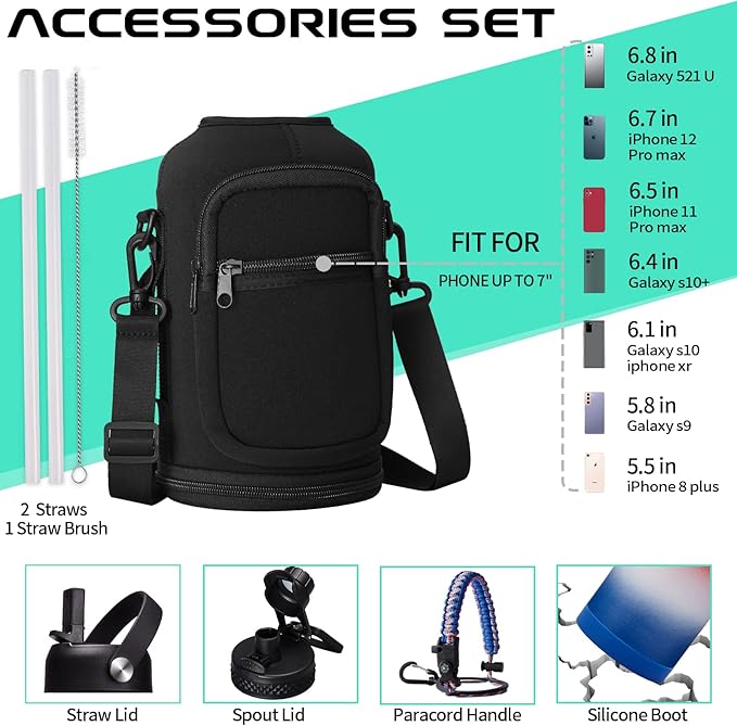 - SUPER JOYFUL COMBO: Buy a 64 oz insulated water bottle, get 9 accessories (2 x lids, 1 x survival paracord, 1 x carrying pouch, 1 x shoulder strap, 1 x protective cup mat, 2 x straws, 1 x straw brush). DIGJUPER provide a lifetime warranty and 7X24H customer service.