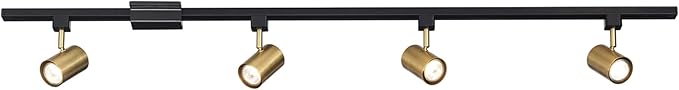 Globe Electric Tribeca 56 Inch Matte Black 4-Light Adjustable Track Ceiling Lighting Kit Fixture with Brass Cylindrical Track Heads, Ideal for Kitchen Island, Compatible with LED Bulbs, 64000009
