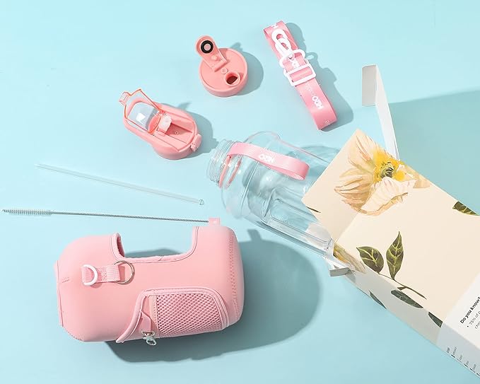- HALF GALLON HYDRATION WITH REMOVABLE STRAW: The extra large pink 2.2L / 74 oz hydro jug holds all the water you need to stay hydrated while exercising. The reusable jug has a 2.25” wide mouth perfect for ice cubes, and removable straw for easy drinking.