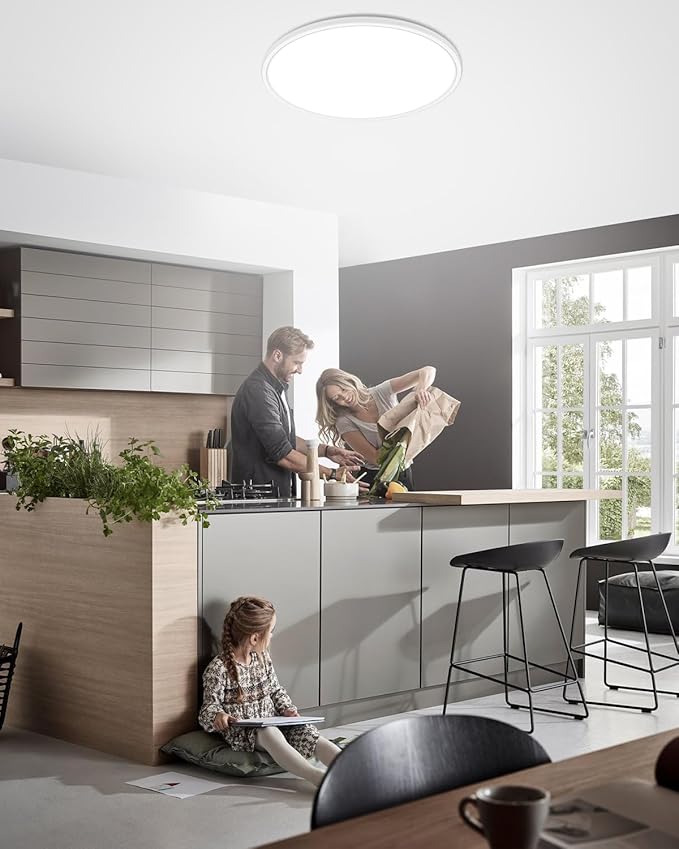 1PACK Flush Mount LED Ceiling Light Fixture Black, 15.8Inch 36Watt, Dimmable & 3000K-4500K-6000K 3 Color Selectable Ceiling Lamp 4000LM Low Profile Ceiling Light for Kitchen Bedroom Hallway, White