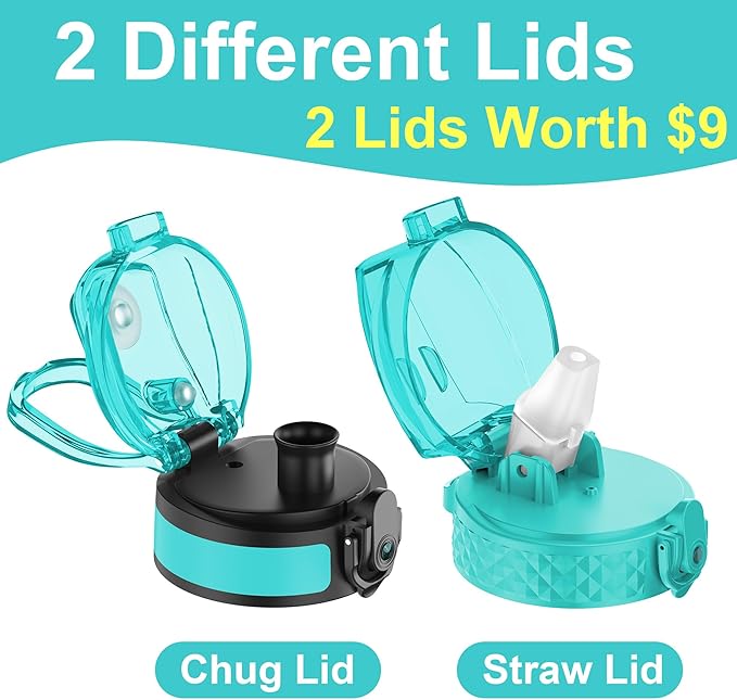 OLDLEY Kids Water Bottle for School with Straw Chug Lid, 15 oz Unbreakable Leak-Proof BPA-Free Motivational Water Bottles with Time Marker for Travel Sports Gym, 2 Lids,Mint