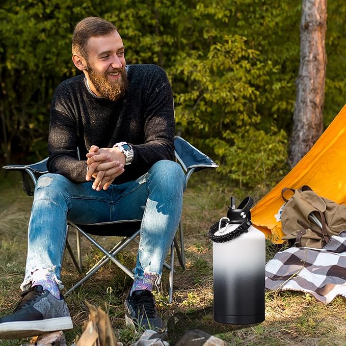 - PERSONALIZATION BOTTLE PARACORD HANDLE - 128oz Insulated water bottle with a pretty cool functional paracord handle which does more than meets the eye.?The survival strap cord is made of military-grade nylon and comes with a compass, safety loop, metal carabiner, flint, igniter, and whistle, making it a functional and stylish addition to your water flask, is perfect for outdoor camping, hiking, fitness enthusiasts