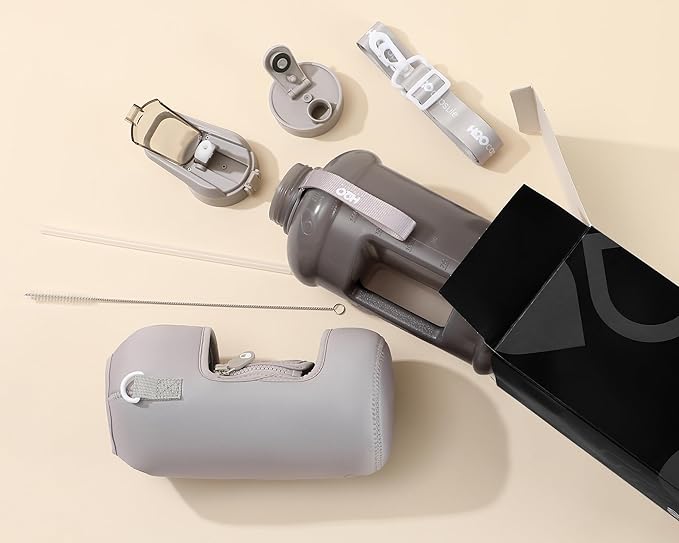 - HALF GALLON HYDRATION WITH COVERED STRAW LID: The extra large 2.2L / 74 oz plastic jug holds all the water you need to stay hydrated while you exercise. The reusable half gallon comes with a leak-proof & dust-proof covered straw lid, which helps protect the mouthpiece and flips open with a click of a button. The straw-lid is air-sealed: Run straw brush through mouth piece before initial use. The H2O Capsule bottle with storage sleeve comes with a bonus straw cleaning brush.