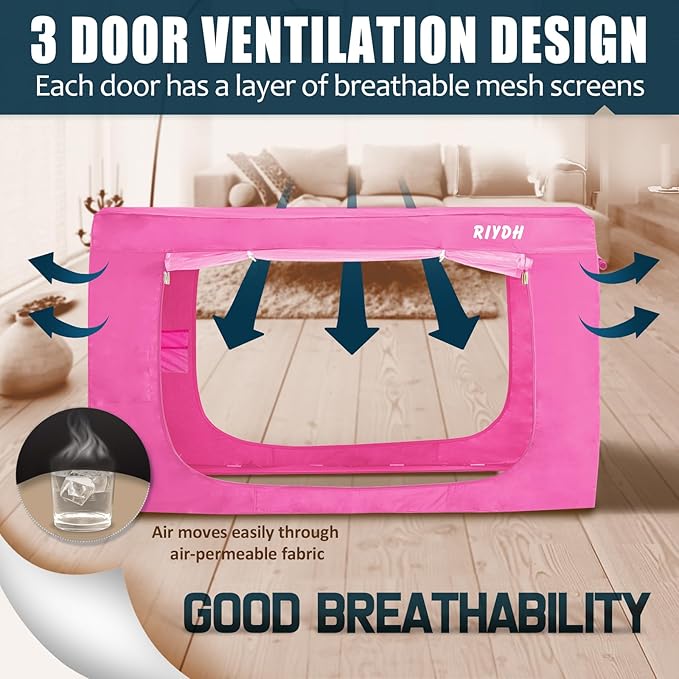 - Cozy Sleeping Space - The bed tent is made of breathable and soft fabric, and the bed tent has 3 doors, each door has an independent mesh window, when you feel stuffy, the mesh will provide you with excellent breathability, and when you feel cold, the door curtain will provide you with cozy warmth and keep you in a comfortable sleeping environment.