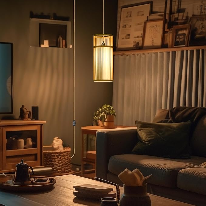 - ENHANCING ANY CORNER: this decorative plug in pendant light transforms any corner into a cozy and inviting space. Making from natural bamoo and japandi style design, this hanging lamp plug in becomes a focal point in any space