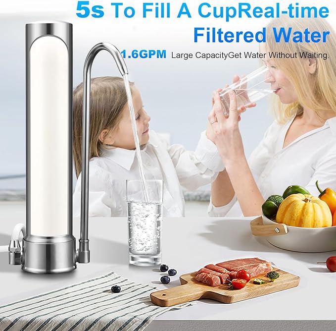 - 【Effective & Economical Choice】The countertop water filter can provide 6000 gallons of fresh water.Affordable choice. Excellent quality.You can save money and enjoy clean refreshing water.