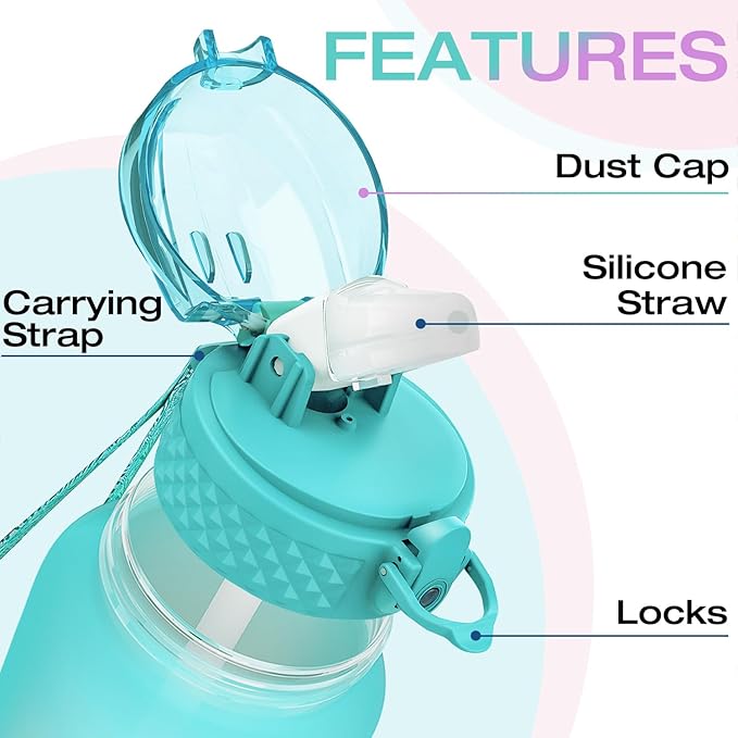 - 【Durable & BPA Free】: Constructed from highly durable, BPA-free, and non-toxic plastic, this water bottle is resistant to drops and avoids easy damage.