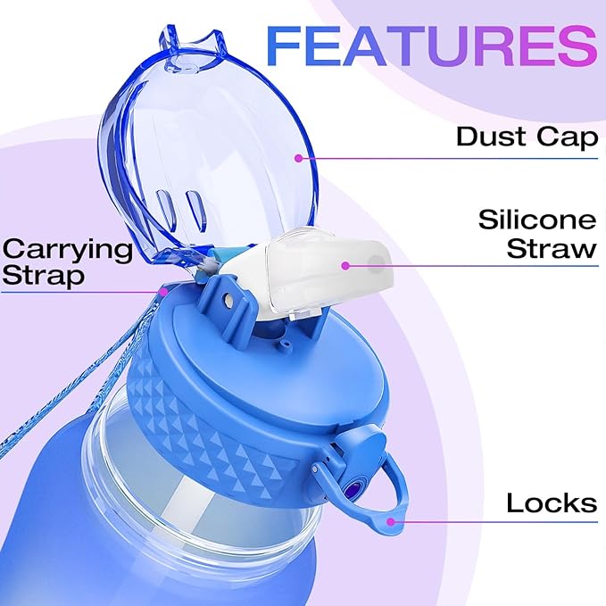 - 【Best for Kids】: Specifically designed for young children to promote hydration throughout the day. The flip-top lid incorporates a safety lock to prevent dust and leaks and can be effortlessly