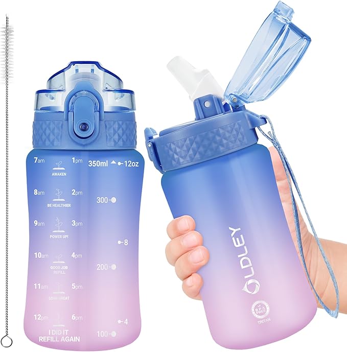 OLDLEY Kids Water Bottle for School, 12 oz, BPA-Free, Reusable, Leak-proof, Durable Tritan Plastic, One-handed Opening, Anti-dust Spout Cover